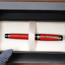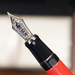 The body of the pen is made of high-quality ebonite, which is carefully coated with multiple layers of Urushi lacquer, each layer polished to a smooth, lustrous finish. The result is a deep, rich red color that is both eye-catching and sophisticated. The pen’s sleek, streamlined design is perfectly balanced, ensuring a comfortable writing experience even during long writing sessions.