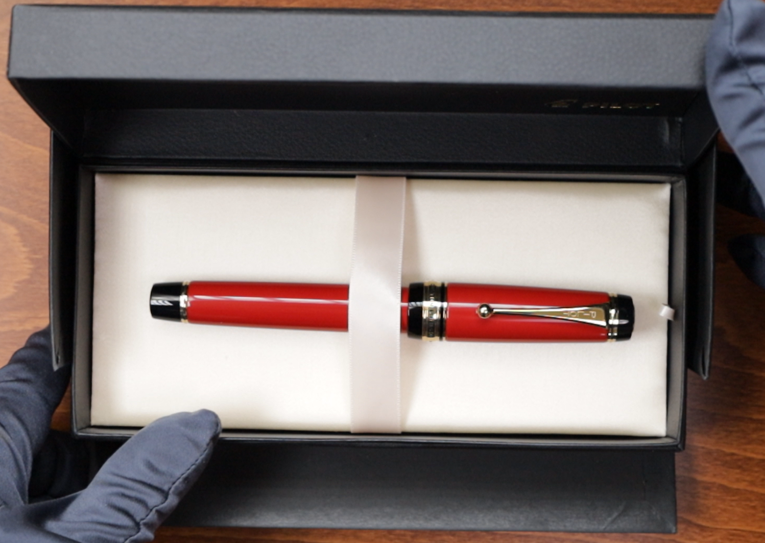 Its vibrant red lacquer finish, created using the traditional Japanese Urushi technique, adds a touch of exotic elegance to its timeless design. This pen is an impressive sight, with its size, design, and color all contributing to its grandeur.